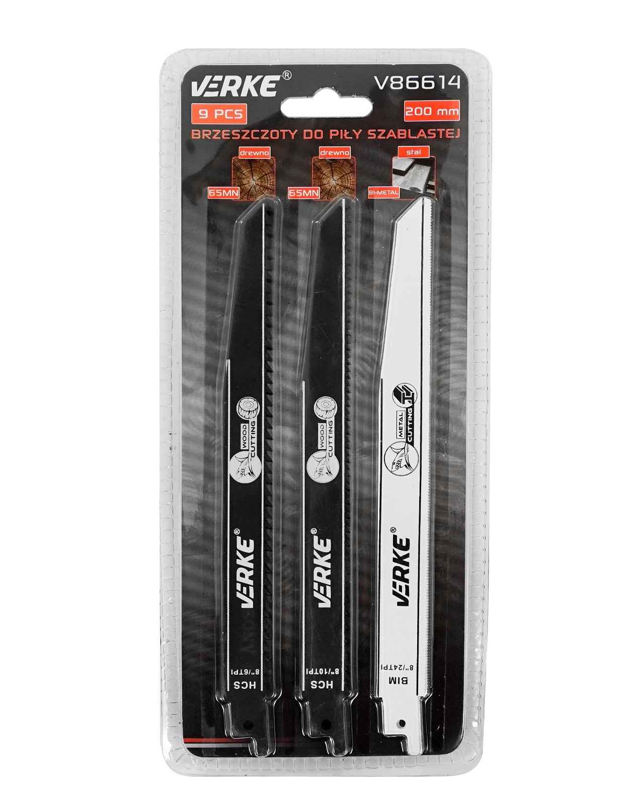 Profesjonalny zestaw brzeszczotów do piły szablastej marki VERKE, przeznaczony do różnorodnych prac tnących. Komplet zawiera 9 brzeszczotów o długości 200 mm, które sprawdzą się zarówno w zastosowaniach domowych, jak i warsztatowych.
