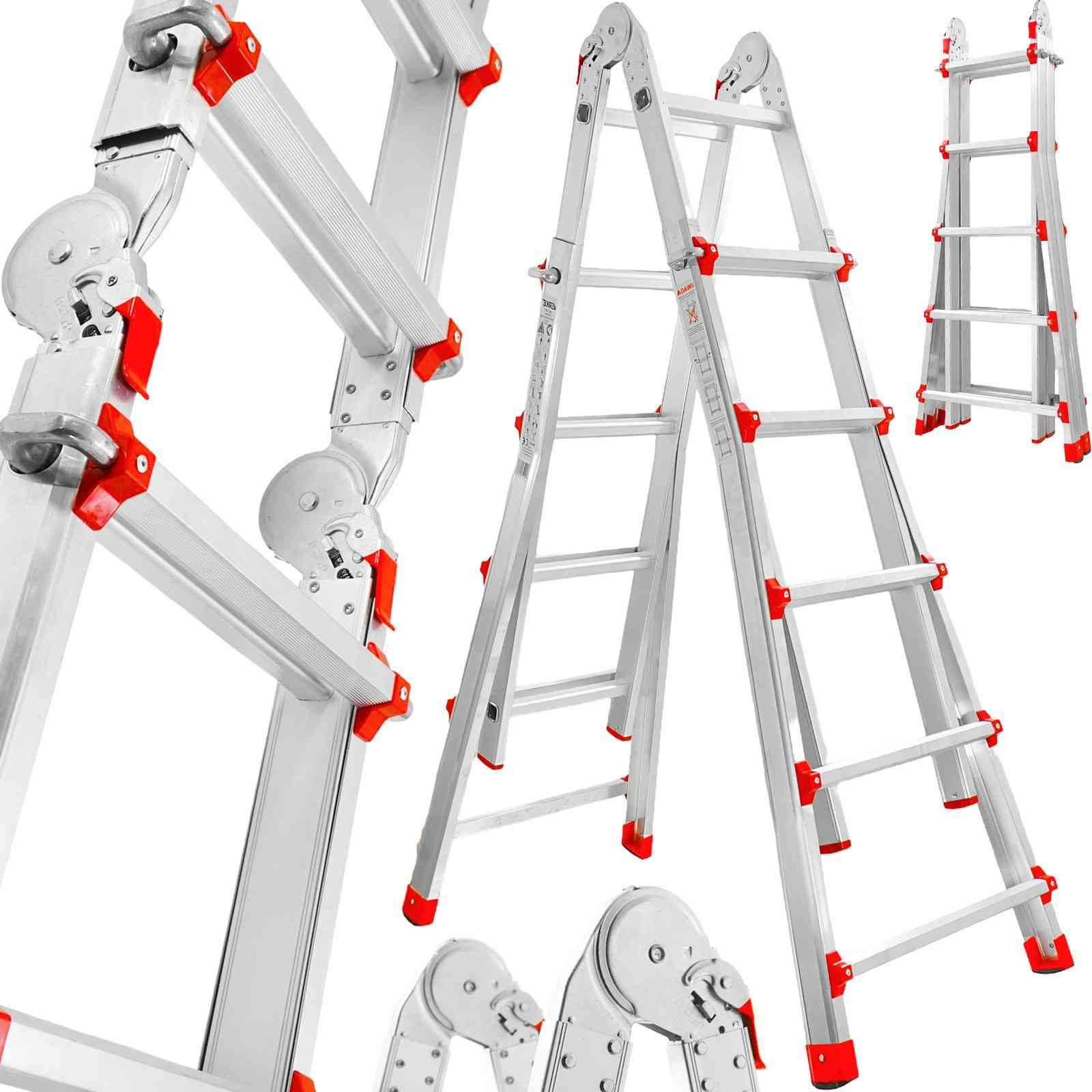 Wielofunkcyjna drabina aluminiowa z możliwością ustawienia jej w kilku konfiguracjach. Wykonana jest z lekkiego aluminium, co zapewnia wysoką wytrzymałość przy jednoczesnym niewielkim ciężarze.