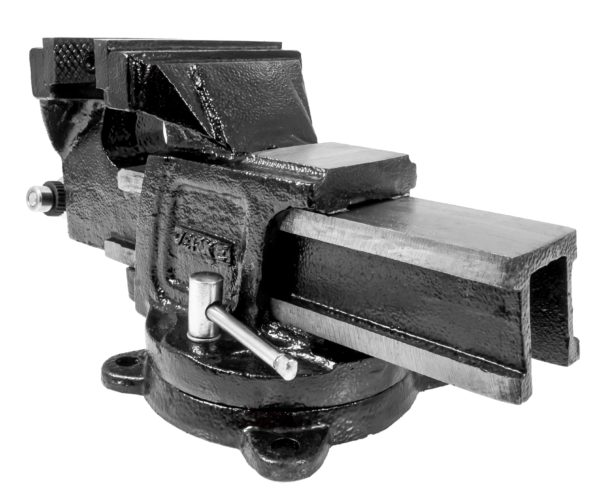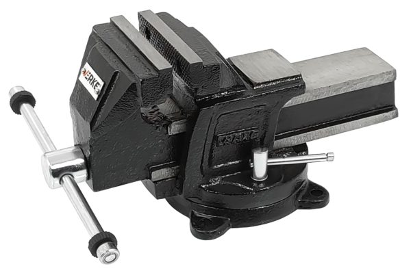Wykonane z wysokiej jakości żeliwa. Szczęki hartowane i szlifowane. Zacisk prowadzony w pryzmach, które zapewniają stabilne i precyzyjne prowadzenie. Podstawa obrotowa w zakresie 360°, pozwala na zmianę kąta położenia w płaszczyźnie poziomej. Imadło połączone z kowadłem tworzy solidną zwartą konstrukcje. Radełkowane szczęki zapewniają stabilny uchwyt. Możliwość dostosowania siły nacisku za pomocą pokrętła. Fabrycznie zabezpieczone olejem.