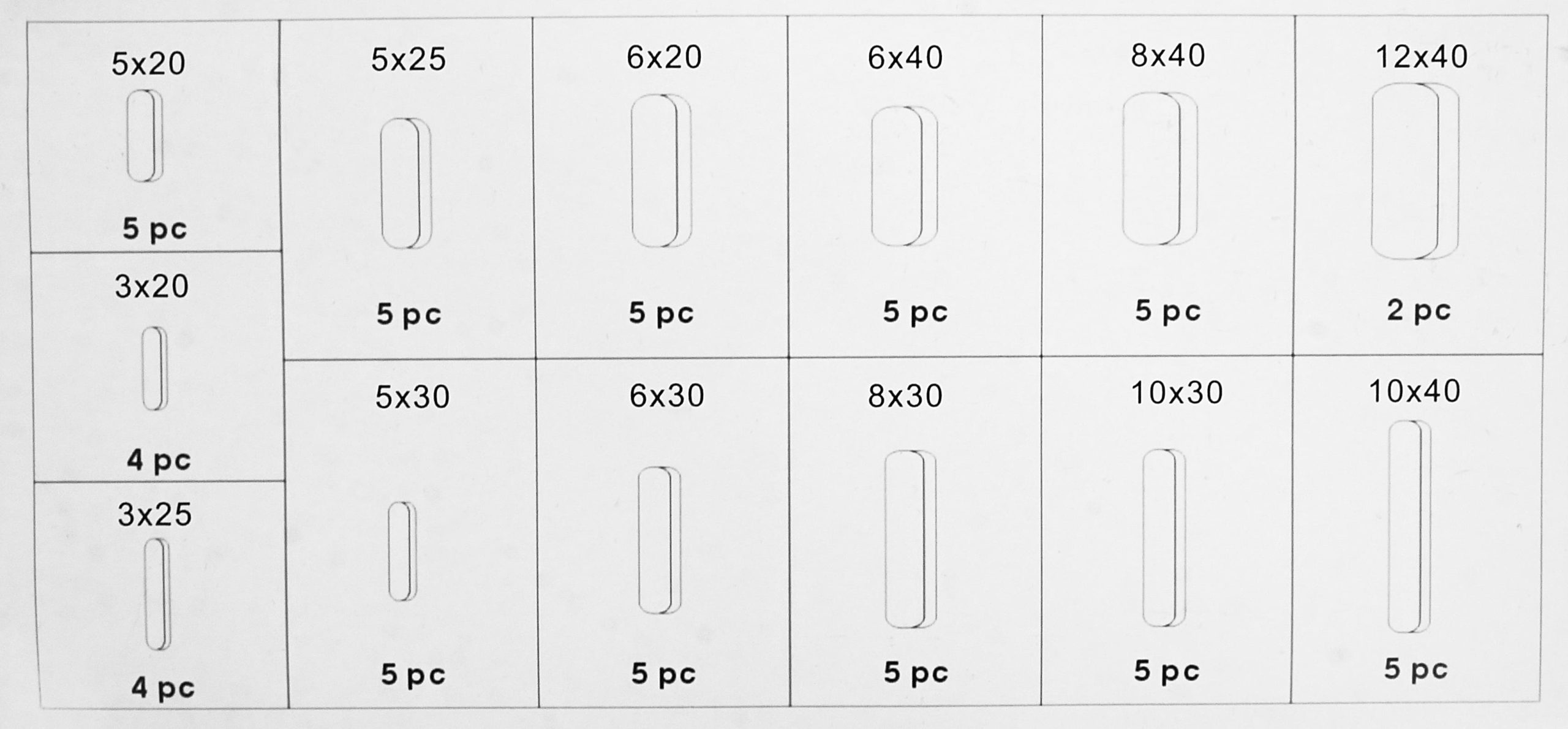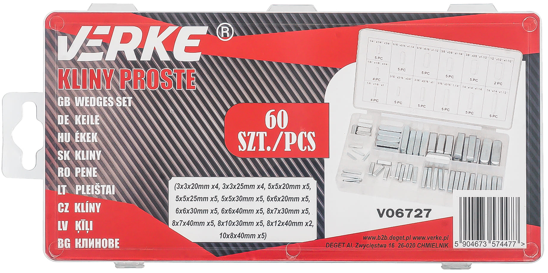 Zestaw klinów, mix rozmiarów umieszczonych w wygodnym organizerze. Zestaw zawiera: