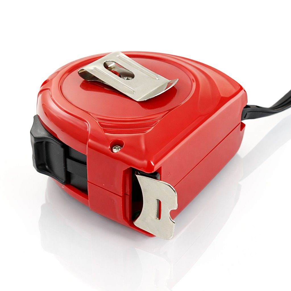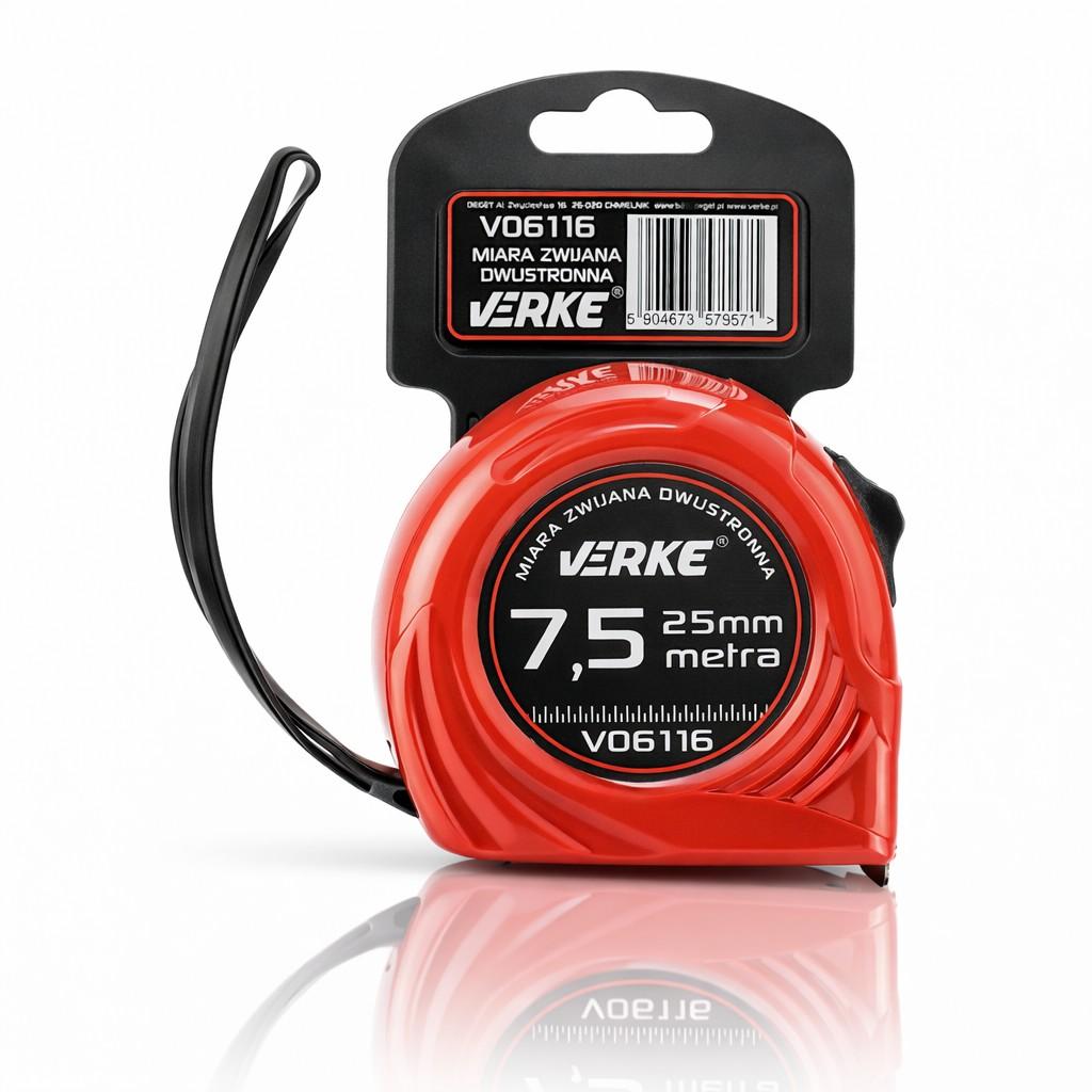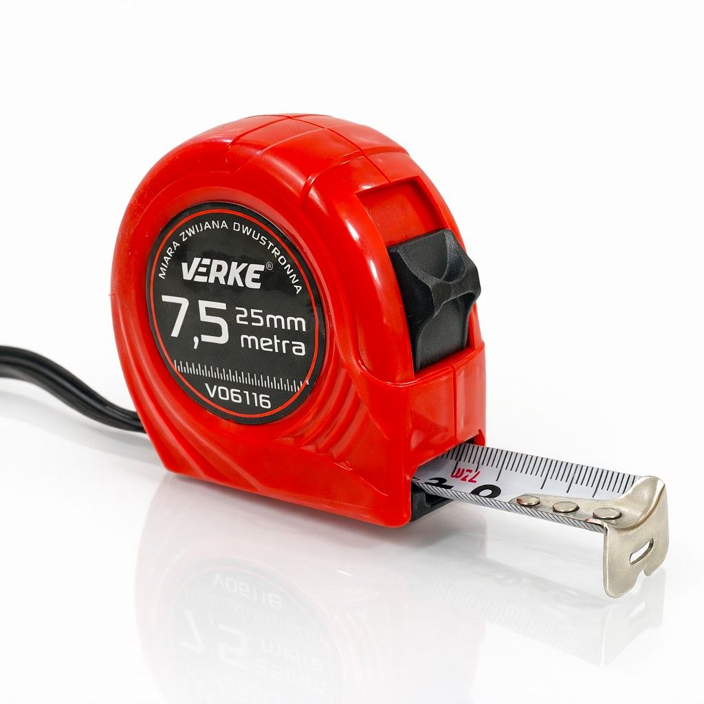 Kompaktowa, zwijana miara o długości 7,5 metrów i szerokości taśmy 25 mm. Posiada mocną, ergonomiczną obudowę odporną na uszkodzenia. Dwustronna taśma pomiarowa znacząco ułatwia pracę, zwłaszcza w trudno dostępnych miejscach. Wyraźne oznaczenia, w tym czerwone wyróżnienia, gwarantują czytelność nawet przy słabszym oświetleniu. Metalowy zaczep zwiększa precyzję pomiarów i umożliwia wygodne zaczepienie taśmy o krawędź. Wyposażona w przycisk blokady, który umożliwia zatrzymanie taśmy w dowolnym miejscu. To niezawodne narzędzie, które świetnie sprawdzi się zarówno w domu, jak i w warsztacie czy na budowie.