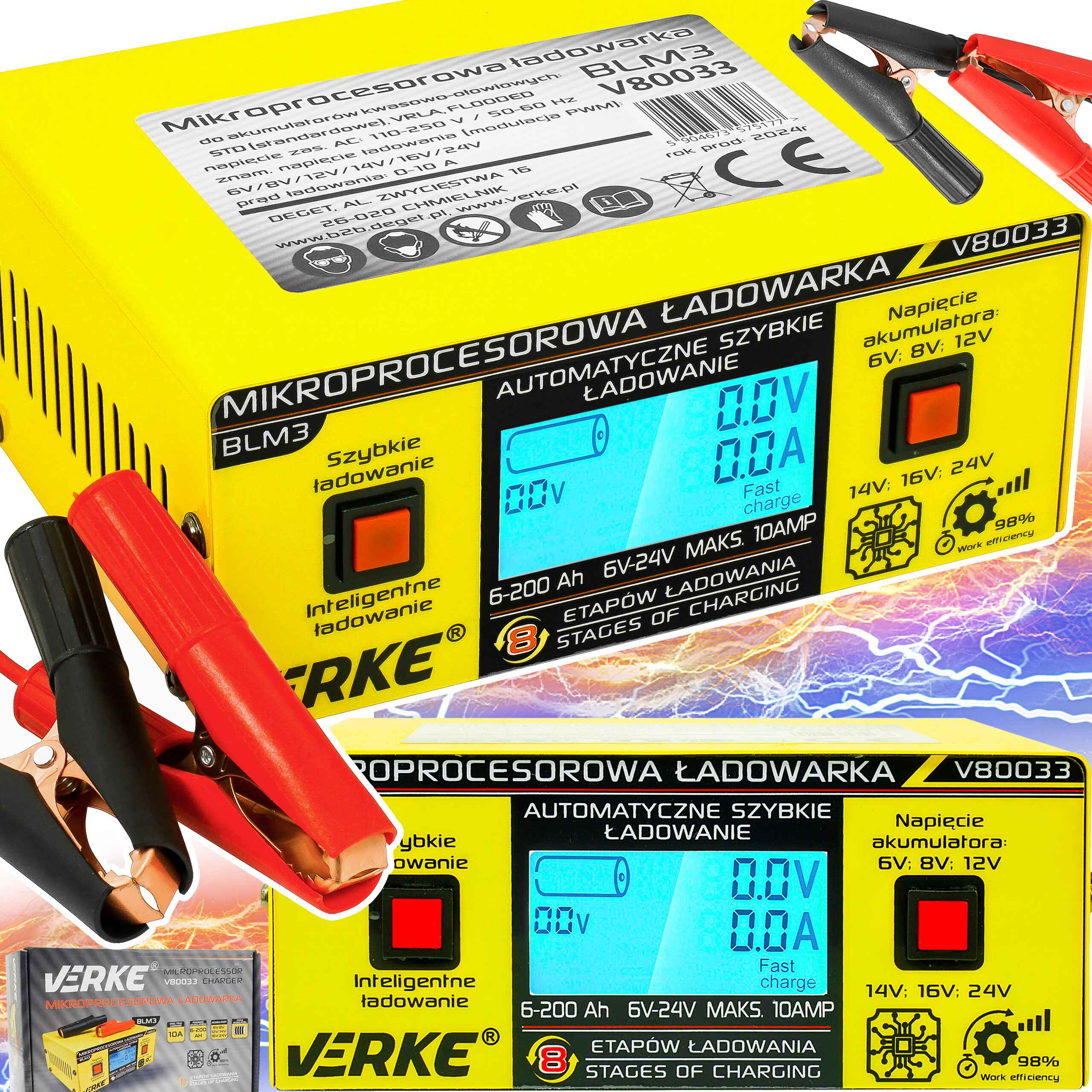 Wysokiej jakości urządzenie do ładowania akumulatorów 12V i 24V w traktorach, samochodach osobowych i dostawczych oraz łodziach motorowych. Prostownik umożliwia naładowanie tradycyjnych akumulatorów kwasowo – ołowiowych, tzw. akumulatorów mokrych. Posiada zabezpieczenie przeciwzwarciowe, oraz zabezpieczenie przeciw przeładowaniu akumulatora i odwrotnym podłączeniem. Wbudowany amperomierz pozwala na stałą kontrolę procesu ładowania a funkcja rozruchu pozwala na szybkie uruchomienie pojazdu.