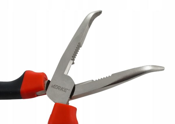 Szczypce VERKE opracowane z myślą o profesjonalnym zastosowaniu. Wygięte wydłużone z obcinakiem bocznym. Szczypce o przekroju płasko okragłym. Szczypce gwarantują mocny uchwyt szczęk dzięki zębom umieszczonym na powierzchni roboczej oraz ergonomicznej rękojeści. Szczęki wykonane z kutej stali hartowanej. Użycie wysokiej jakości materiałów zapewni długą i bezproblemową pracę.